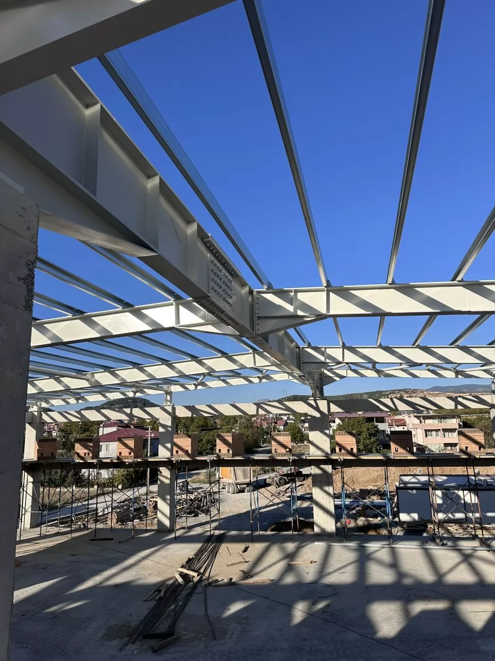 PROJE ADI : Denizli Büyükşehir Belediyesi / Buldan İtfaiye Bina Çatısı PROJE YERİ : Buldan / Denizli PROJE YILI : 2023 PROJE DETAYLARI : 13,5m açıklıklı çift eğim , 25 m boyunda , 7 metre yüksekliğin de betonarme kolon üzeri İtfaiye Bina Çatısı